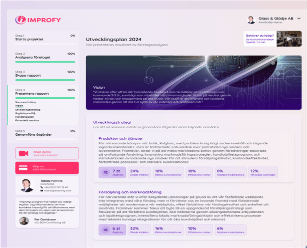 ”Det bästa med att arbeta med Improfy är att man får tydlig överblick över mål och vad som behöver göras för att nå dem. Jag rekommenderar Improfy till alla företag.”